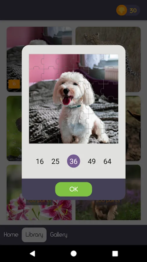 - Many level difficult 16/25/36/49/64 pieces