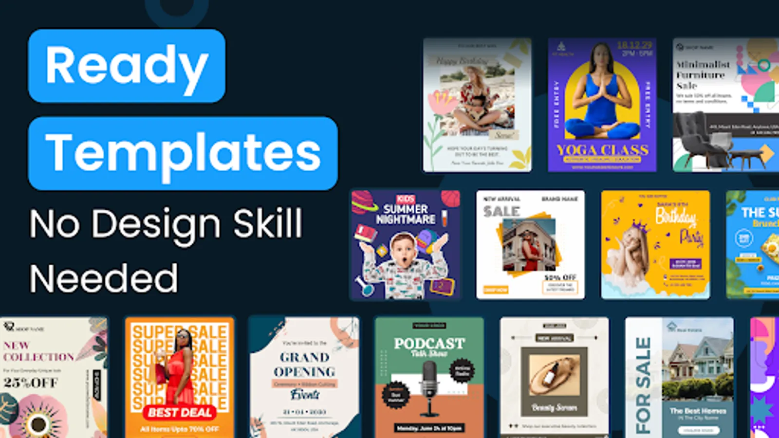 Versatile Graphic Design Templates: Whether you're a business looking to boost your online presence or an individual creating stunning visuals, our app offers a diverse range of templates for your graphic design needs.