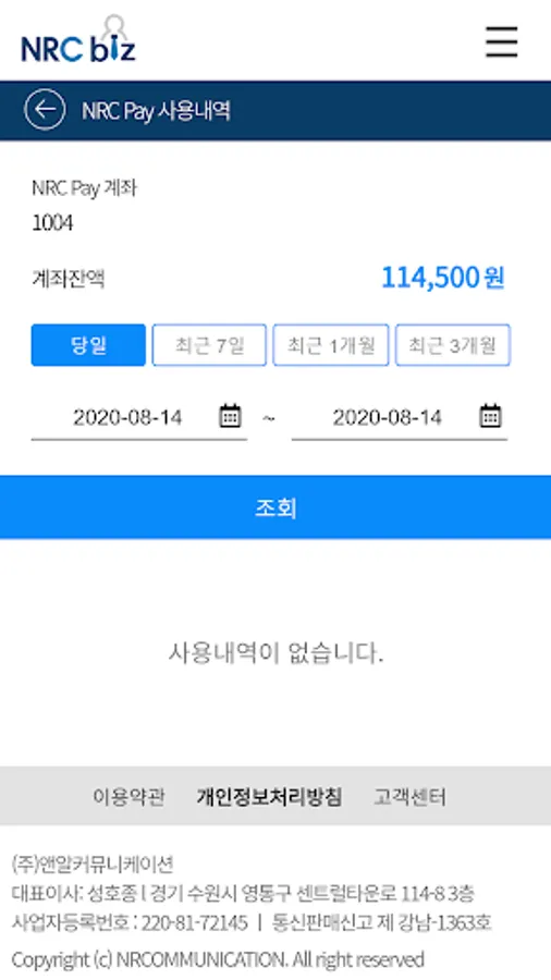 * NRC Pay charging and usage history inquiry