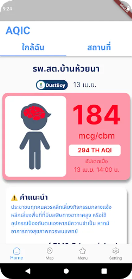 The National Research Council of Thailand (NRCT) supports the creation of a PM2.5 small dust sensor network in Thailand by integrating real-time data in each installation area. then displayed in the form of an hourly average in micrograms per cubic meter and daily average in micrograms per cubic meter and the air quality index from PM2.5 or PM2.5 Th-AQI