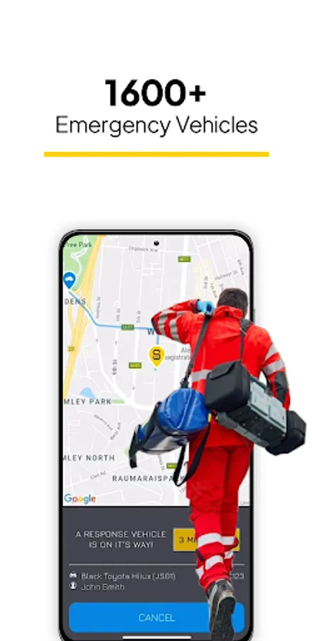 The closest response vehicle is navigated to your exact live GPS location for greater