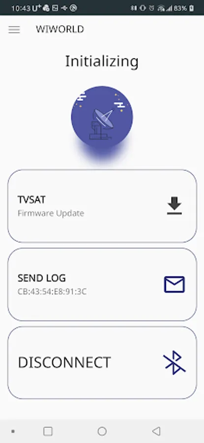 Update your Wiworld TVSAT satellite antenna with the newest software via bluetooth connection (BLE).