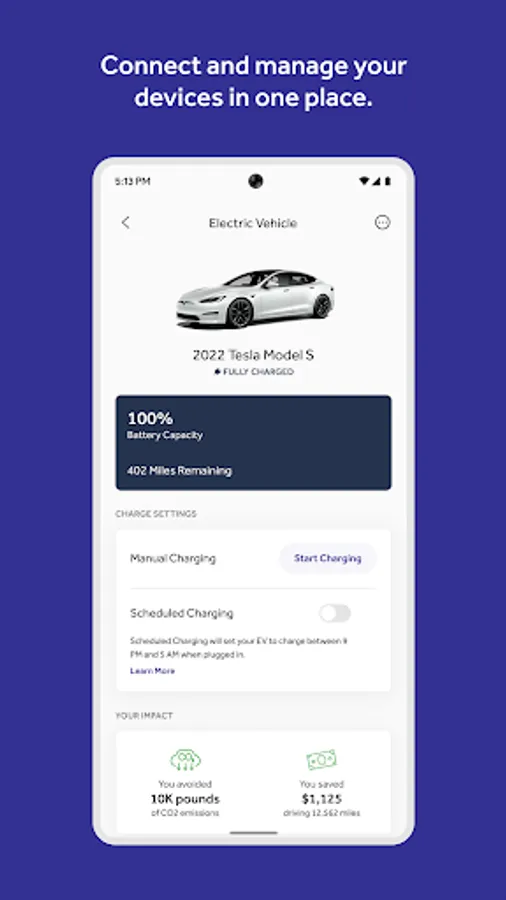 Link your electric vehicle (Tesla, Jaguar I-Pace, Ford Mustang Mach-E), Nest Thermostat*, and Enphase Solar accounts