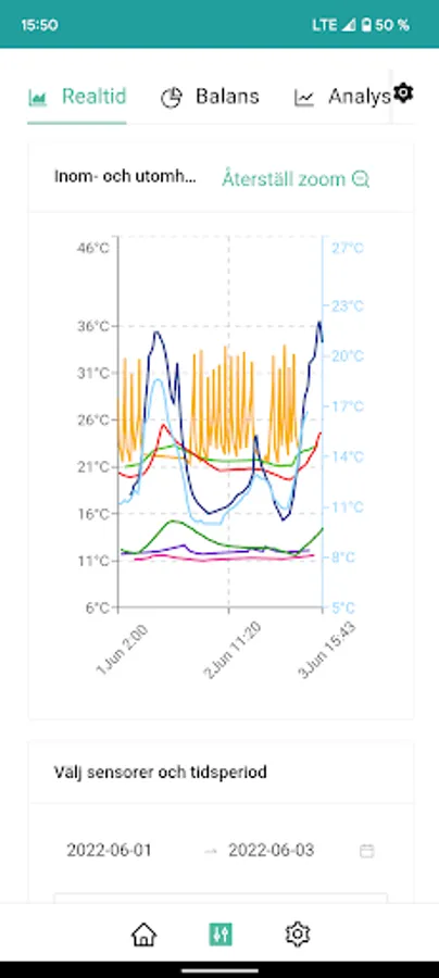 In our app you can see what the indoor climate is like in real time and get the latest analysis. The app is also used when installing Nrlyze measuring systems, to activate and name sensors during installation.