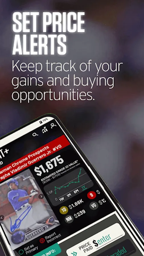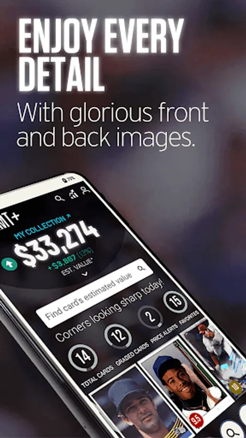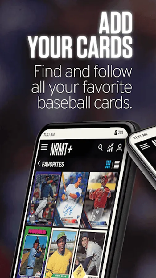 Search for your new and old favorites with the hobby’s best search tool for baseball cards. NRMT+ was built by baseball card fans for baseball card fans. We created the app to bring the fun back to collecting, and help keep track of your prized collectibles, whether Grade 10 slabs or Near Mint+ double sleeved wax pulls. Even your ‘87 Sportflics.