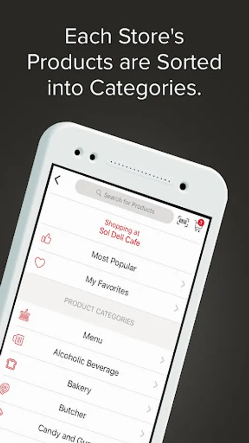 2. Select a store and search through their products. All products are categorized so you can easily find them.