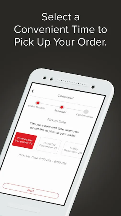 3. Add items to your cart, and select the day and time you'd like to come pick up your order.