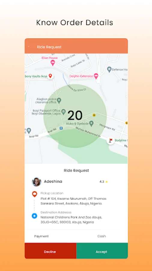 We understand the power of information and believe everyone deserves to be informed with what's necessary. That is why we provide you with rider's details,just as they have your details too. This means you can drive warmly and relaxed knowing who you are with.
