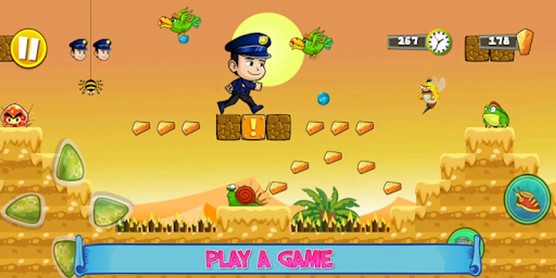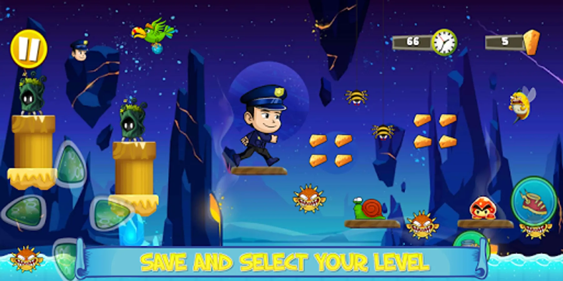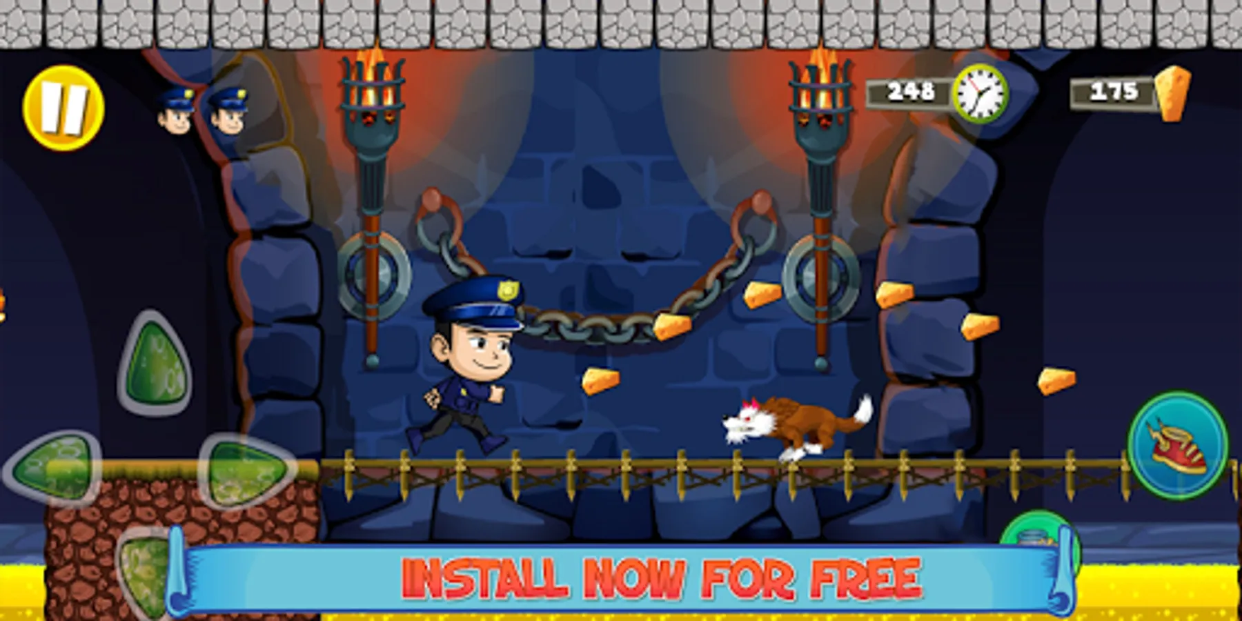 This police jump game is straightforward and fun. The controlling is anything but complicated. It's really easy to make the cheese police jump and run to collect cheese and avoid obstacles through the jungle world. It's just pure fun without any complexity.