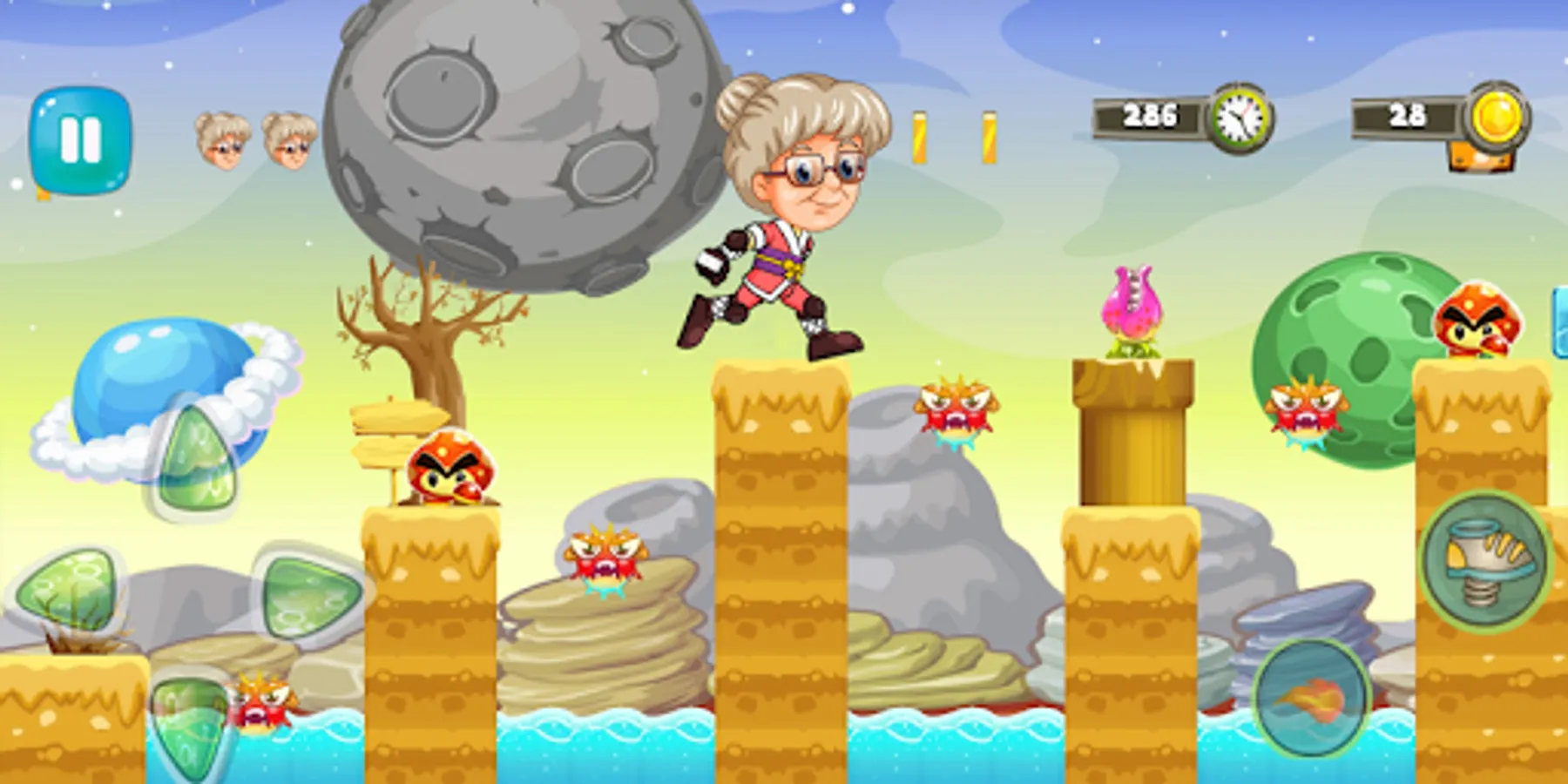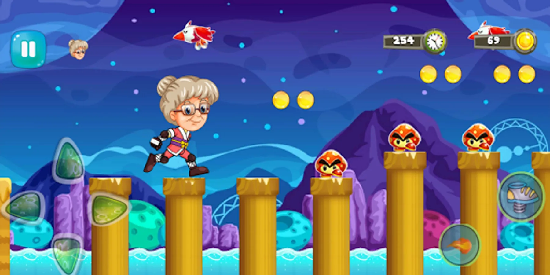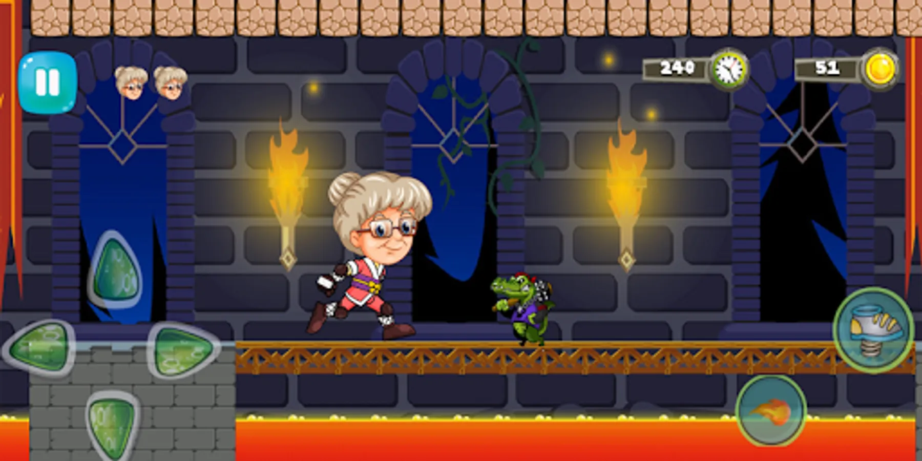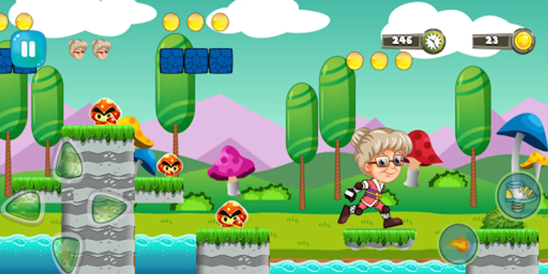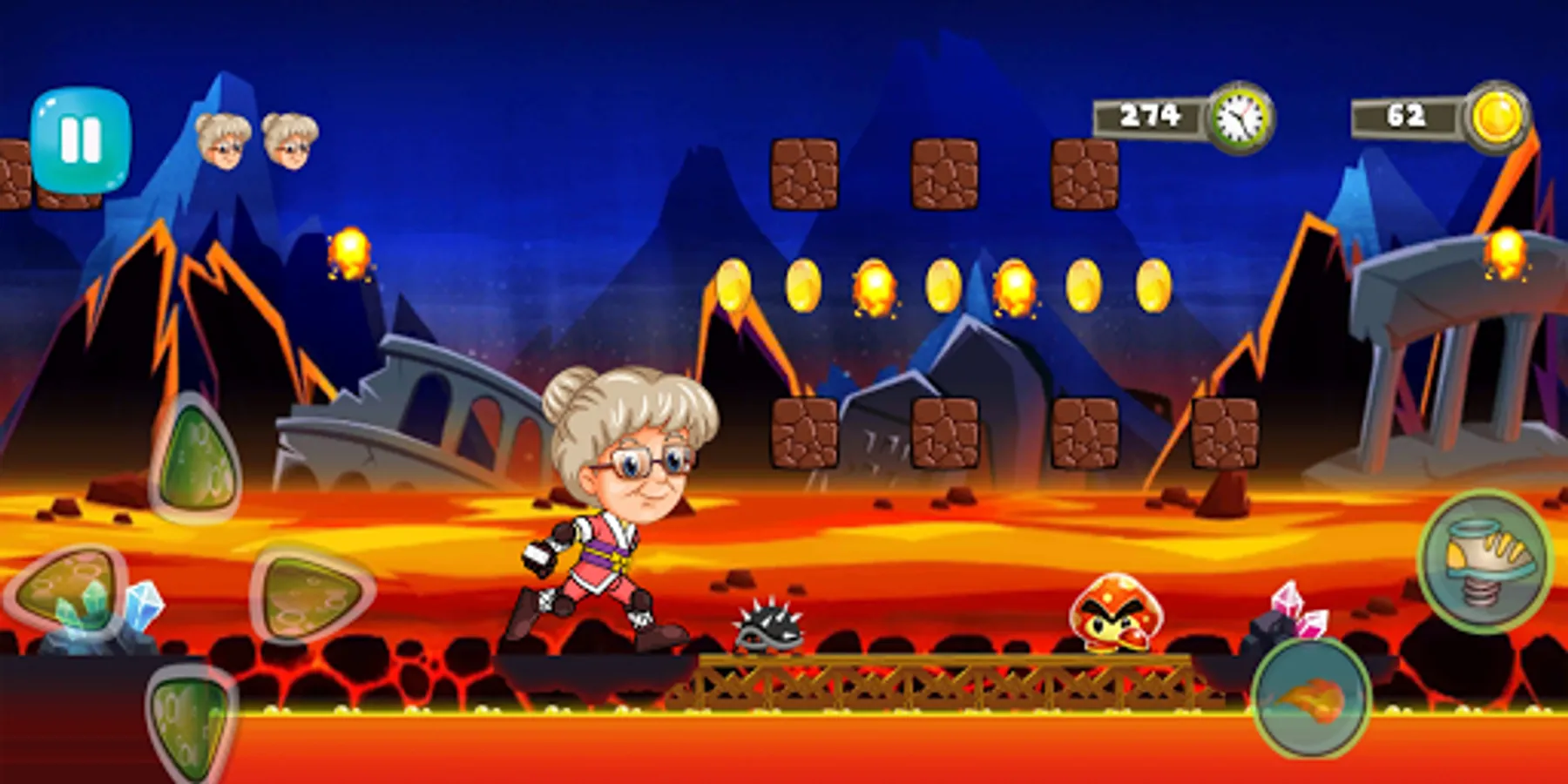 So are you ready to help the Granny and travel across dangerous Cliff, Desert, Swamps, Volcano, Demons, etc. Boost jump and run, and explore the jungle games, treasure, Collect gems, and powerup to help you defeat the Demons! Everything designed very well for you to have a lot of fun! We warn you, itΒ΄s not an easy adventure games so good luck!