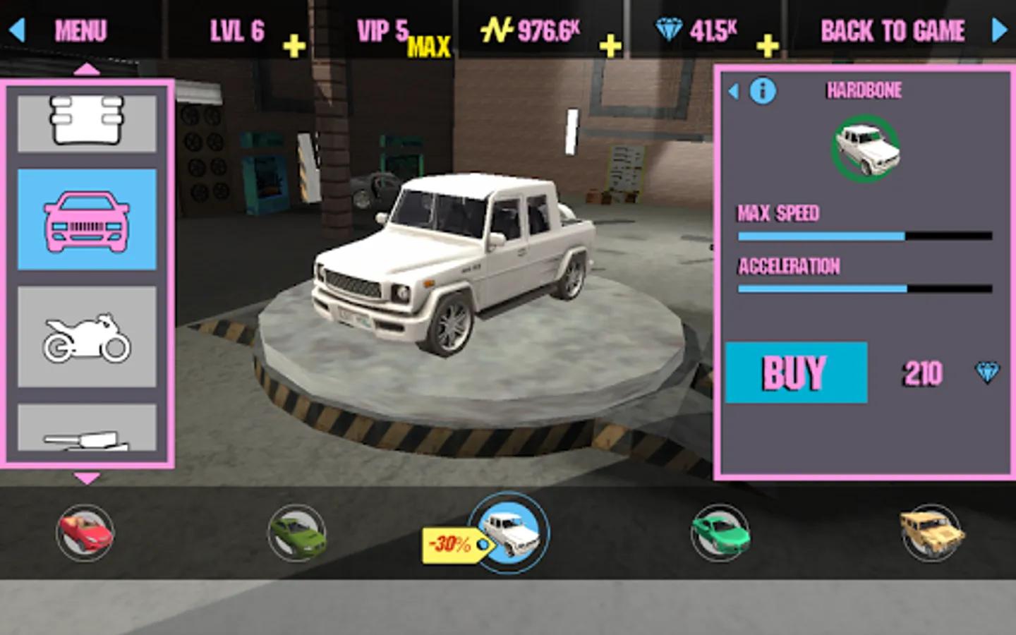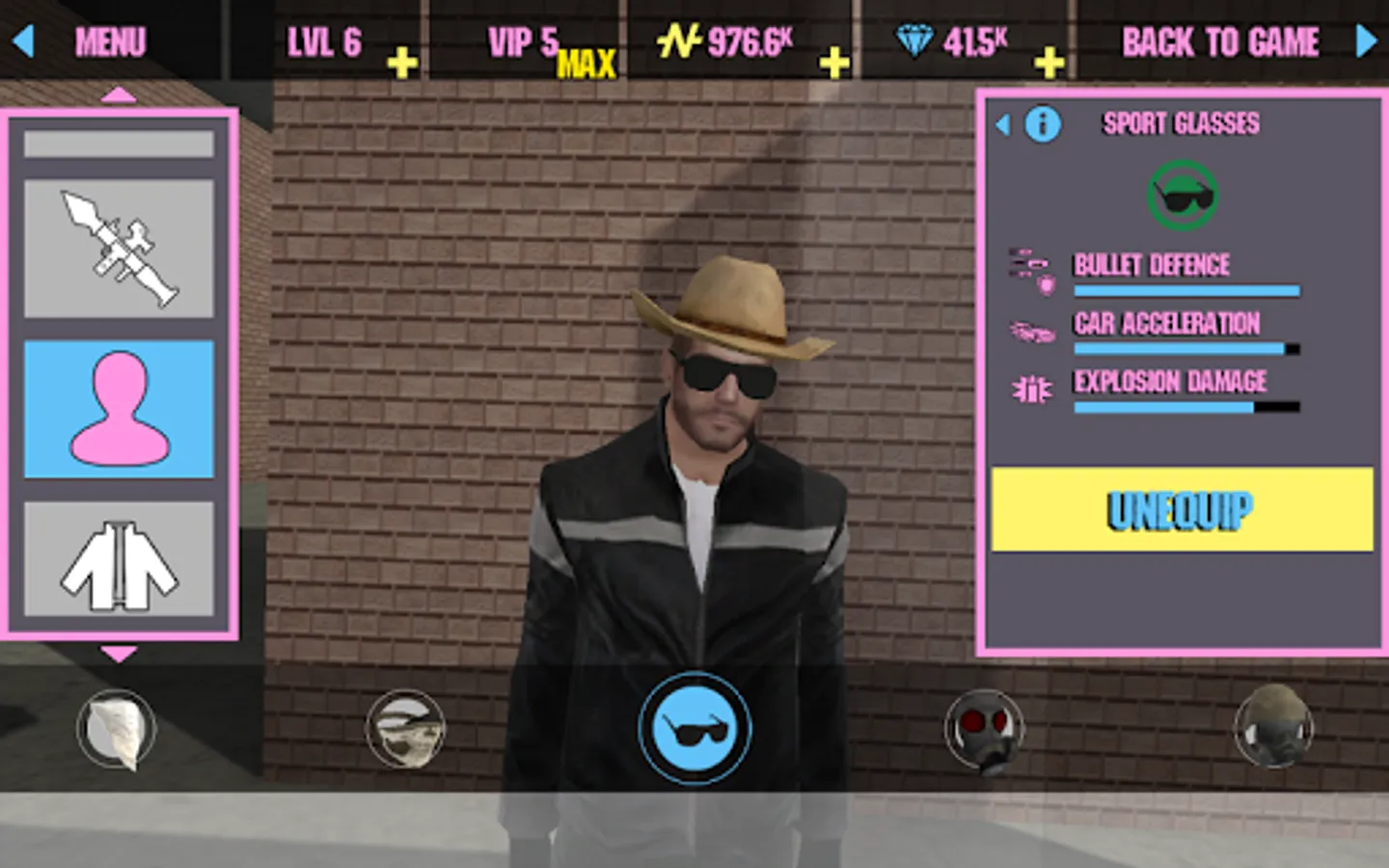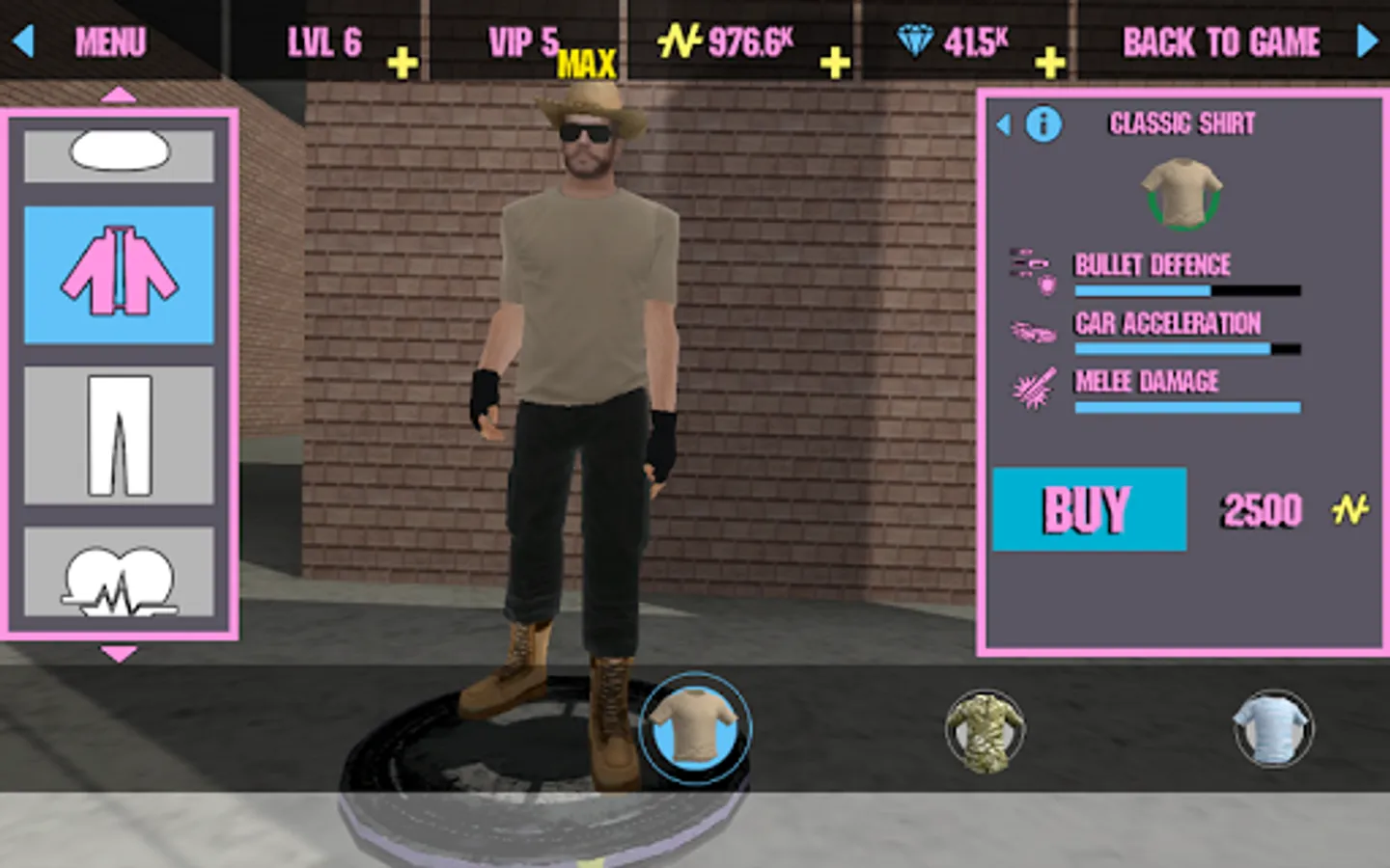 • Earn money and spend it in the store, buying different weapons, clothes and cars