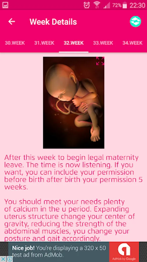 -You can also follow each week your baby's development and its impact on you