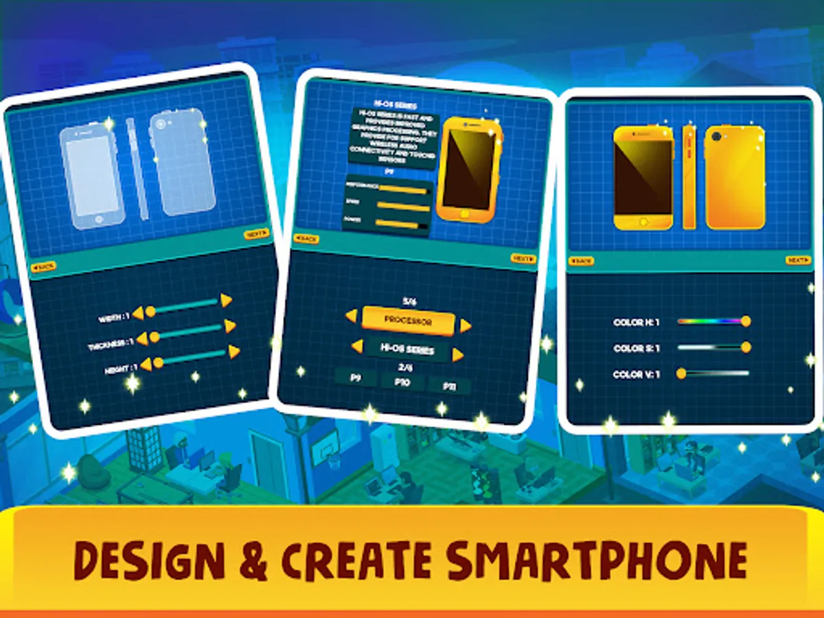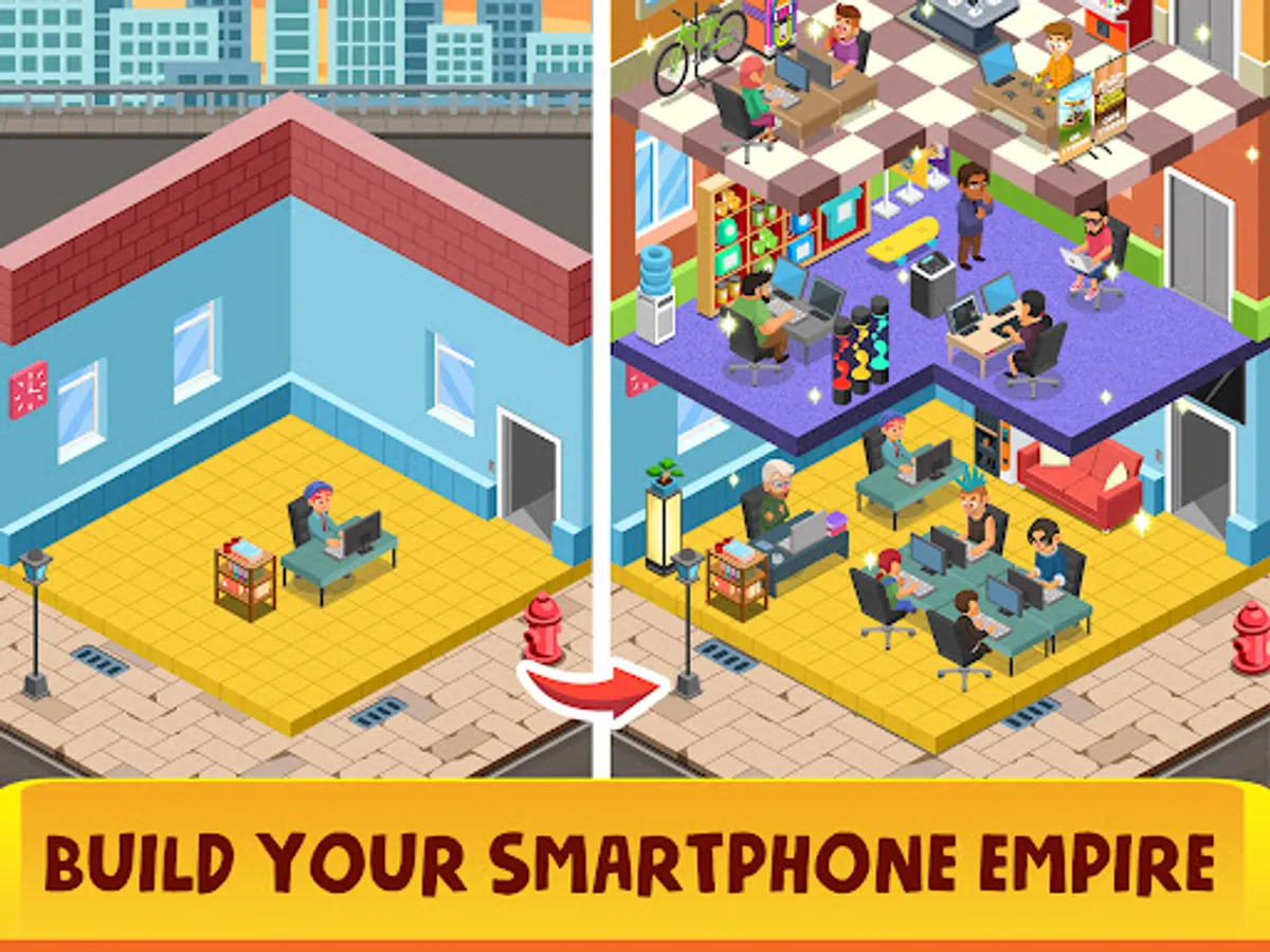 You start and run as an idle independent smart phone designer working on mobile smartphones and then slowly and smartly progress through hiring more people and making more smartphones managing operations. This is a perfect game for everyone who are interested in designing mobile phone business and who wants to make and design mobile phones or someone who wants to run and become a smartphone tycoon in mobile phone business and create the best smart mobile phone business story simulation inc. You can create and design your own smart mobile phones, how cool is that? Its better than becoming a tuber and run the empire. You can run your own Smartphone empire better than the tuber business.