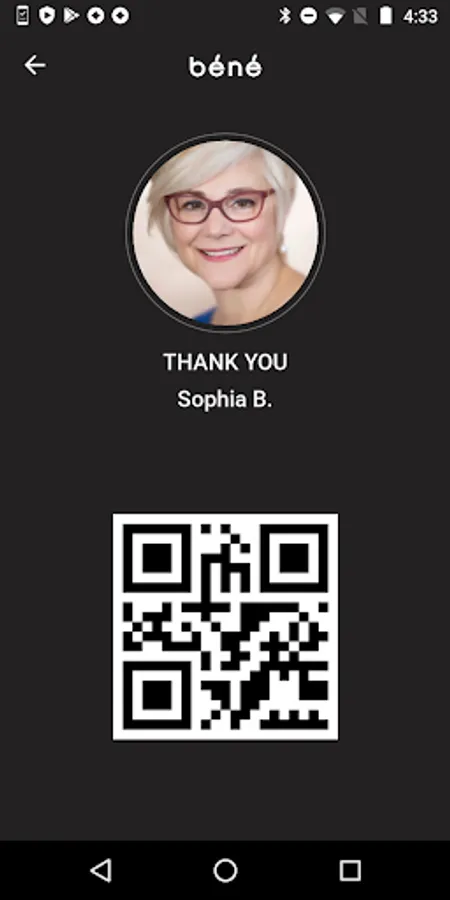 Hand - Receive a personalized QR code with a béné Tipping Thank You card or view via app.