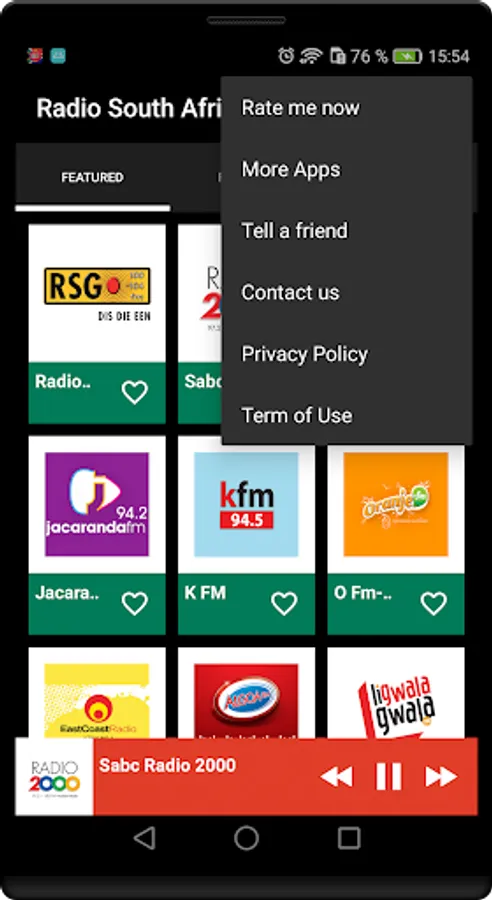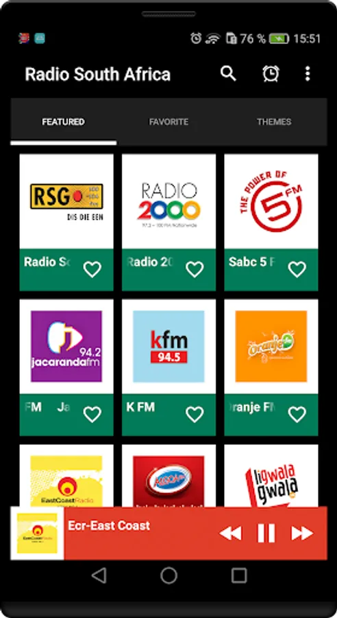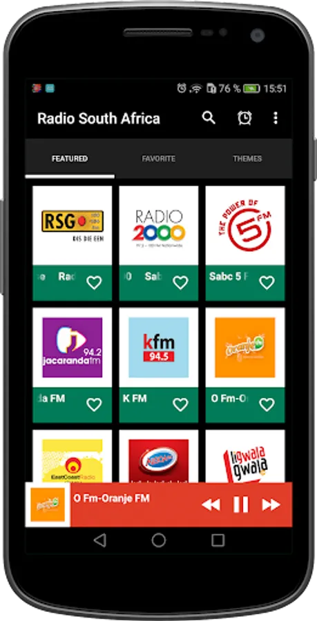 Listen to your favorite radio stations without headphones such as: Radio Sonder Grense, Sabc Radio 2000, Sabc 5 FM, Jacaranda FM, K FM, O Fm-Oranje FM, Ecr-East Coast, Algoa FM, Ligwalagwala FM, Lotus FM, Gagasi FM, Capricorn FM, Classic FM, Y FM, Good Hope FM, Radio Pretoria, Radio Khwezi, Eden FM, Power FM, Lichvaal Stereo, Radio Laeveld, S FM, Fine Music Radio, Heart FM, Bok Radio, Radio Namakwaland, Smile FM, Bosveld Stereo 5 FM, Chai FM, CUT FM, Giyani Community, Good News Radio, Hot FM, Link FM, Luister FM, Perron 1 FM, Radio Overberg, Radio Pulpit, Teemaneng, Sirius FM... Most of South african FM radio channels are available.