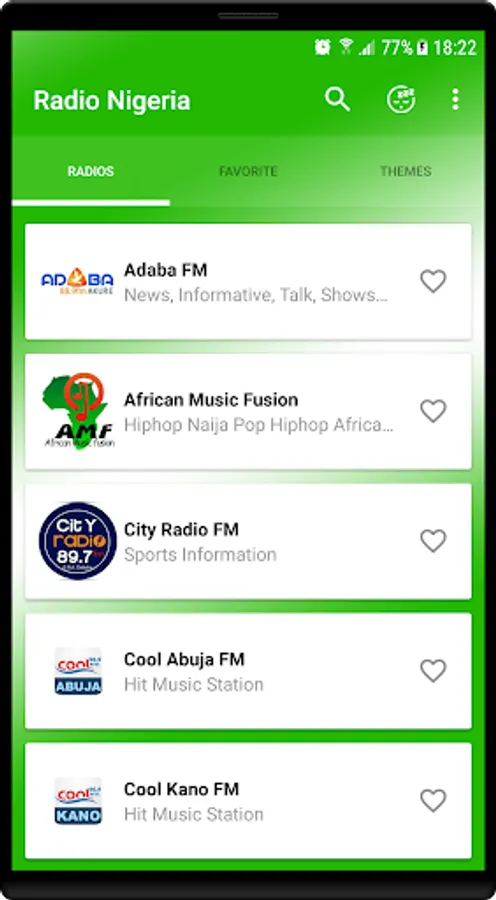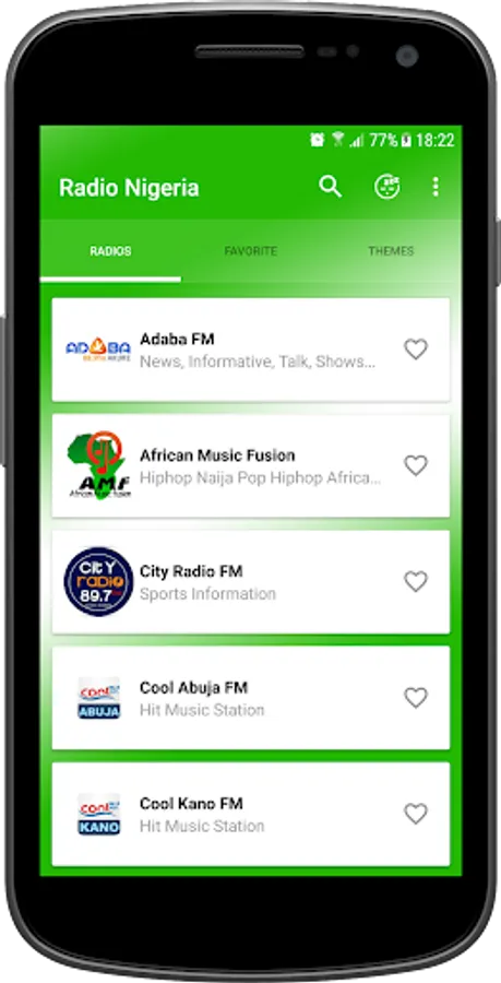The program of Radio Nigerian offers a distinctive bouquet of the most beautiful English-speaking radio stations through different categories such as: sports radio, music radio, popular radio, Nigerian radio news, radio stories, radio competitions .... It's a real radio with high sound quality, in addition to its various features such as sleep mode, which allows you to set a standby time until the radio turns off.