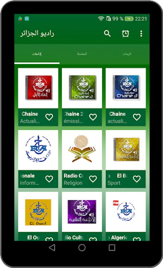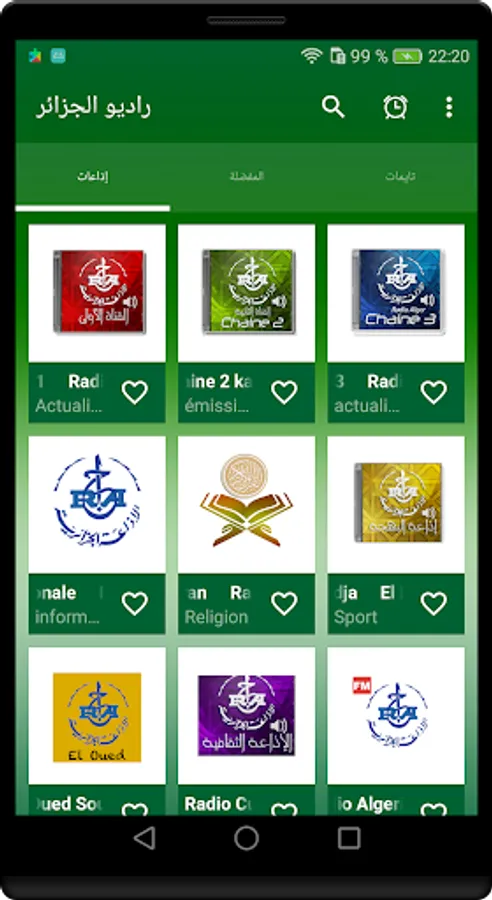 Radio Algeria has presented you with a distinctive package of the most beautiful Algerian radio stations through various categories such as: Sports Radio, Music Radio, Popular Radio, Algerian News Radio, Radio Stories, Contest Radio ... It is considered a real radio with high sound quality, in addition to its various features such as hypnosis mode, which allows you to set a time to sleep until the radio turns off.