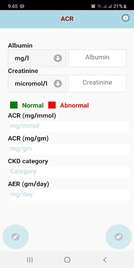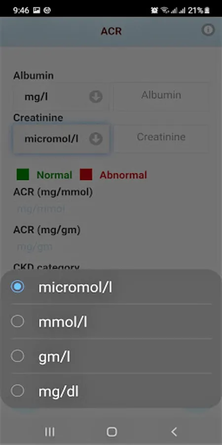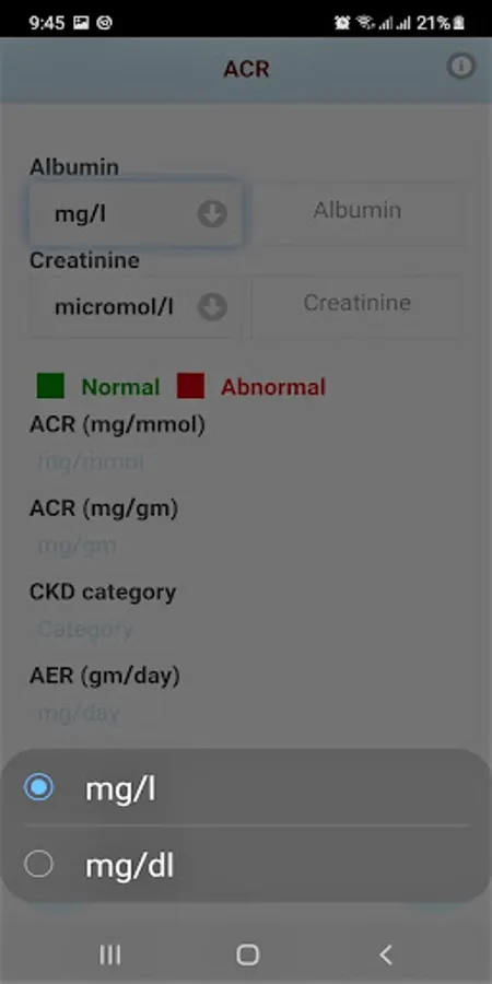 This application enables Health Care Professional to calculate Albumin Creatinine Ratio (ACR) and know how severe is proteinuria.