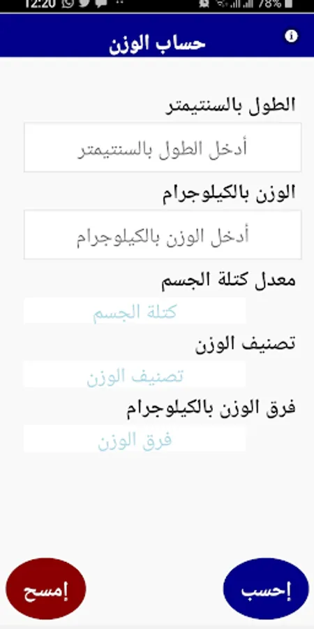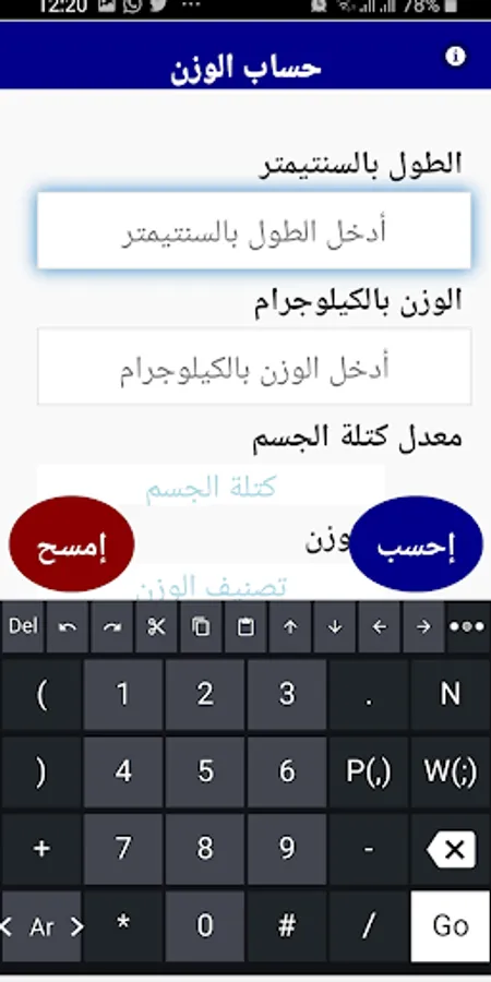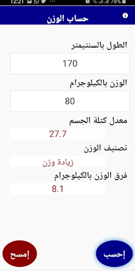 This application has been developed to facilitate weight calculation, allowing users to calculate body mass, weight loss, and weight loss.