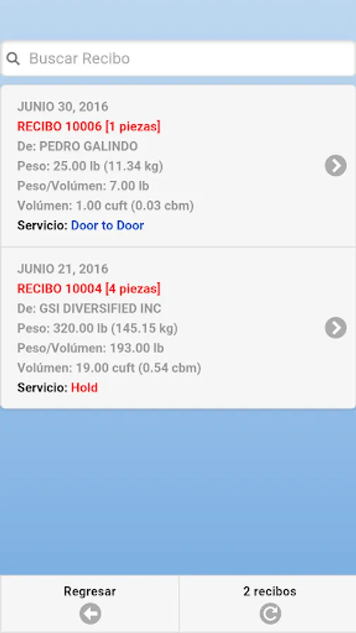 * Search by Receipt Number Receipt and / or Tracking (Tracking).