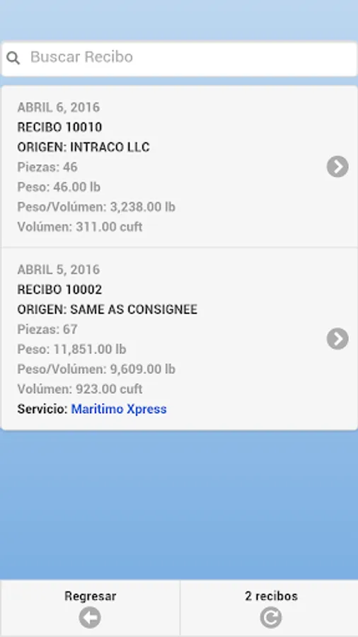 * Search by Receipt Number Receipt and / or Tracking (Tracking).