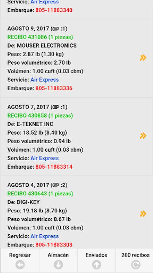 * Search by Receipt Number Receipt and / or tracking (Tracking).