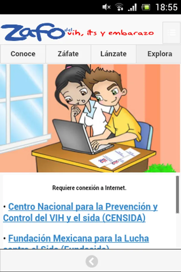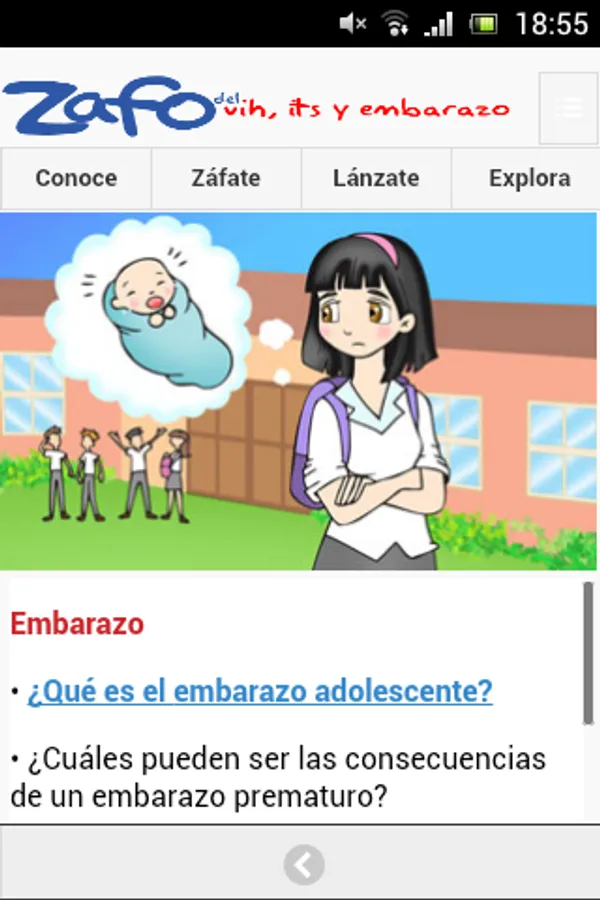 Zafo is an informative application aimed at teenagers, to prevent transmission of HIV, its, and unwanted pregnancies.