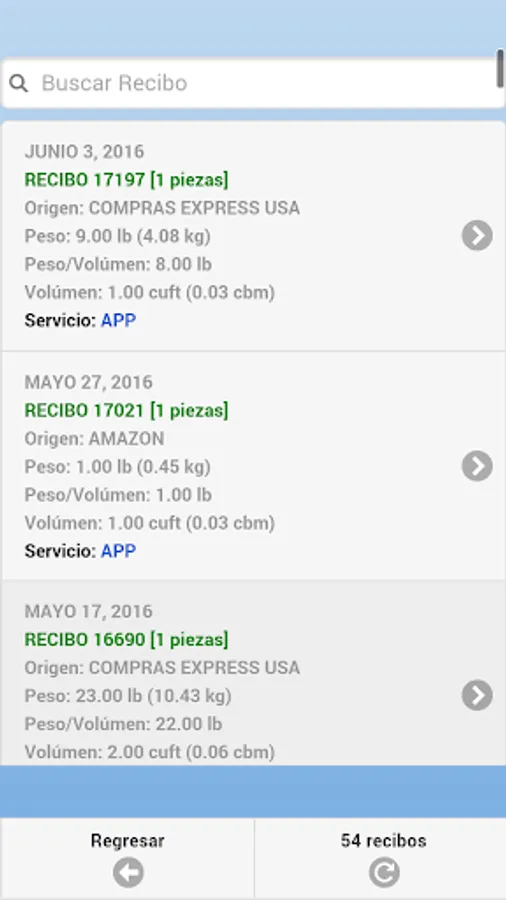 * Search by Receipt Number Receipt and / or Tracking (Tracking).