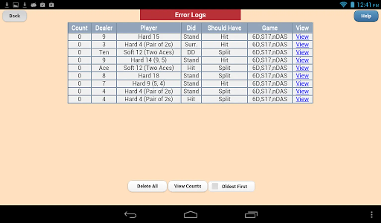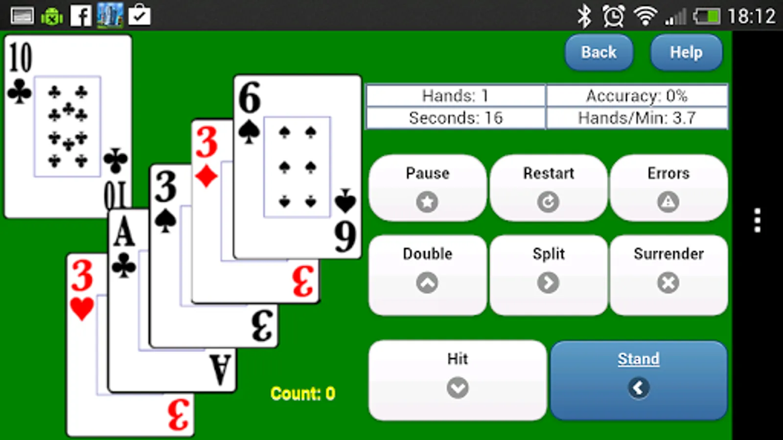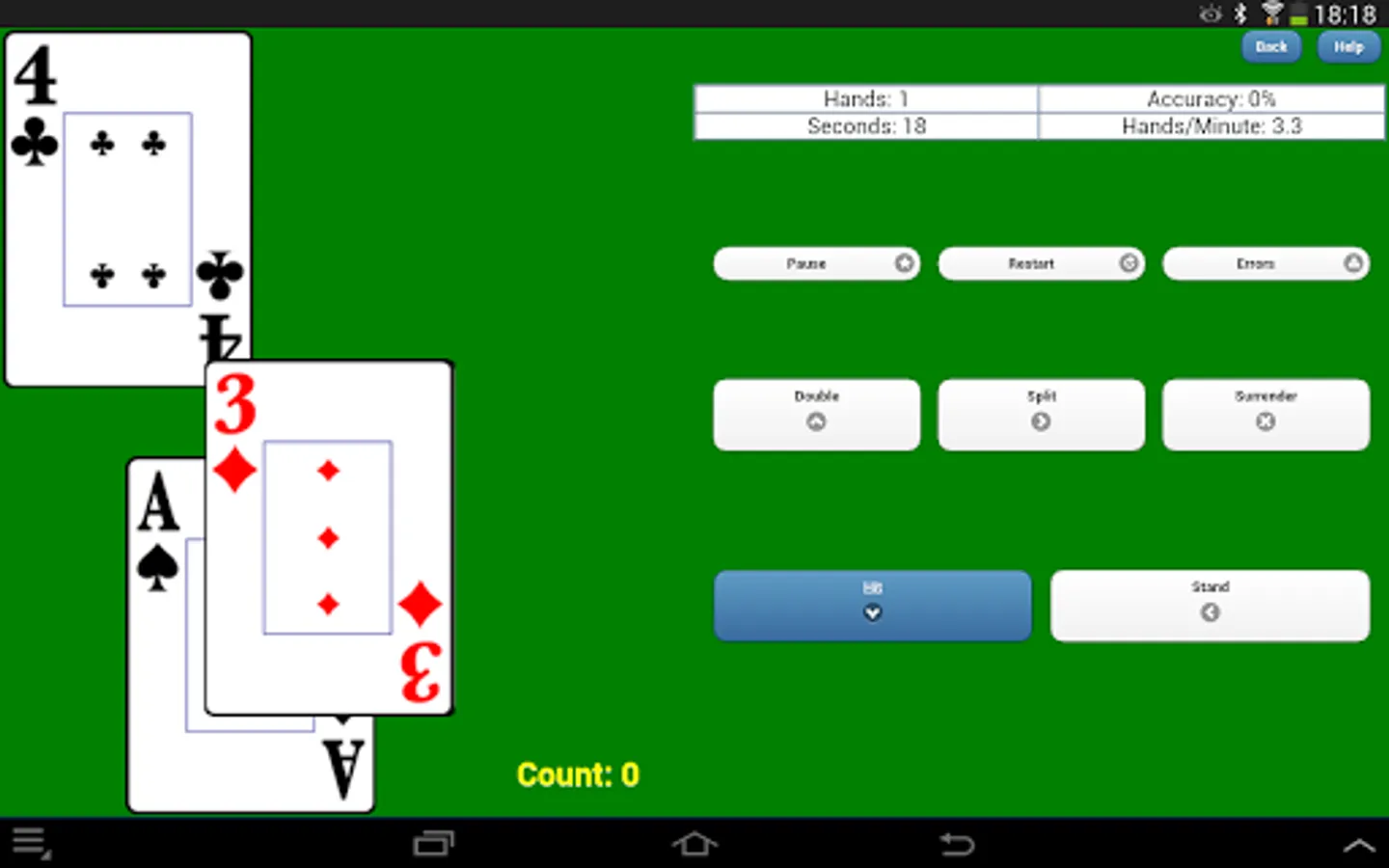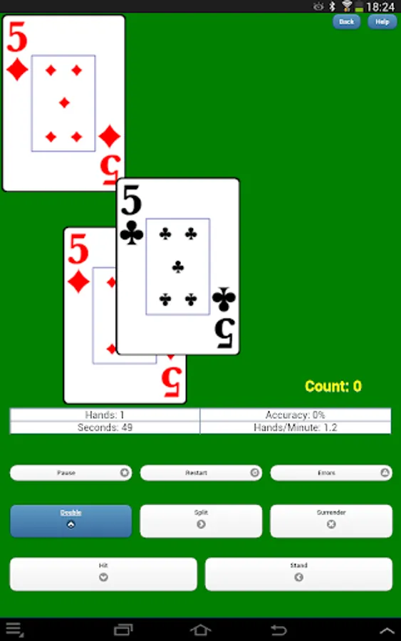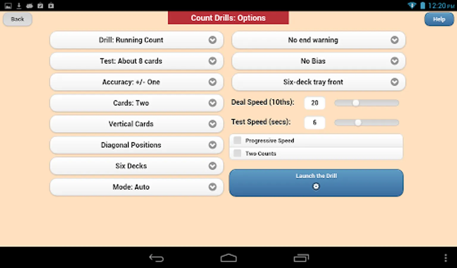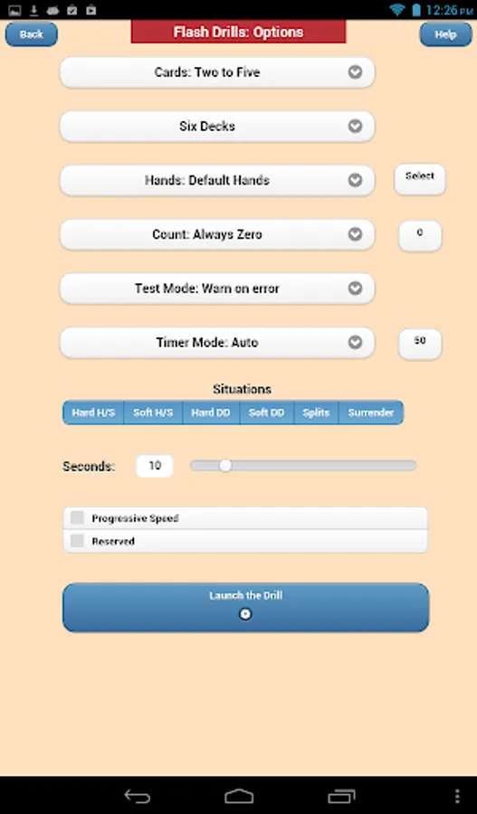 Counting, Flashcard and Depth drills operate in portrait or landscape orientation on phones and tablets. Full table drills are landscape mode only and require a tablet. The Flashcard drills can be used by basic strategy players and Spanish 21 and Superfun 21 players. All drills are useful to Blackjack card counters. Flashcard drills allow either button or swipe input for all decisions.