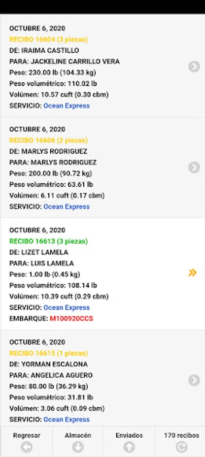 * Ver sus Recibos de Almacén por despachar y los ya enviados.