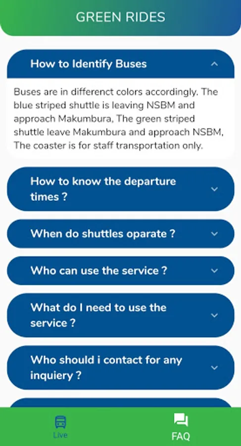 Green Rides mobile application allows to live track the location of the shuttles of NSBM Green University Town