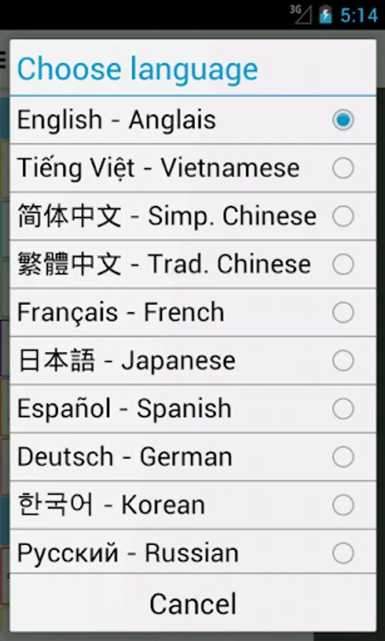 - Multiple languages supported: English, French, Vietnamese, Chinese, Spanish, Japanese, German, Korean, Russian, Portuguese, Italian, Greek, Thai, Indonesian, Arabic, Hindi, Bengali, Malay, Turkish, Dutch, Polish, Romanian, Persian, Ukrainian, Azerbaijani, Swedish, Hungarian, Serbian, Khmer, Hebrew, Bulgarian, Czech, Kazakh, Uighur and Uzbekistan (36 languages totally). Users can change between English and other languages by setting in the language button. More languages to come soon.