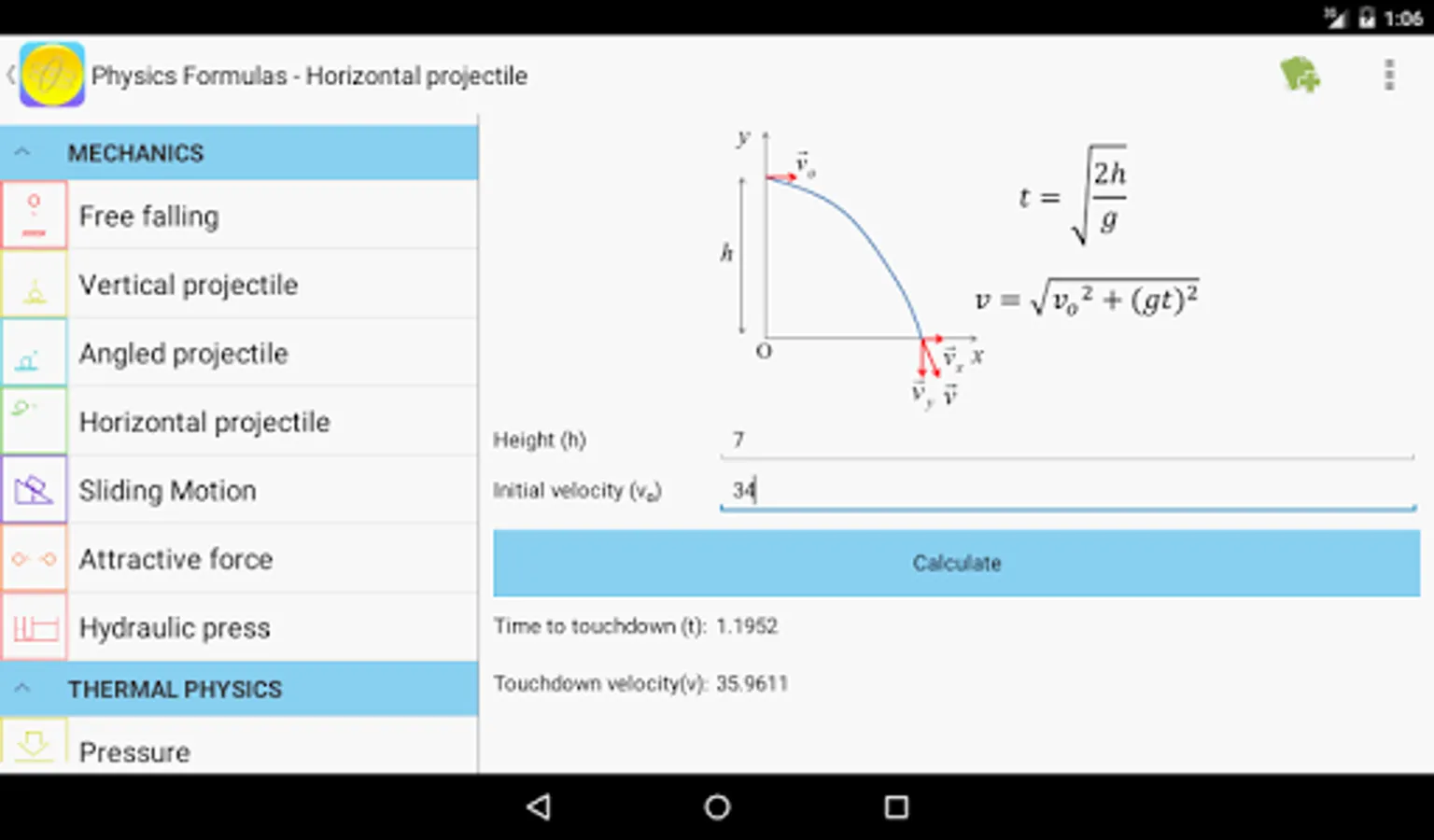 - Tools: users can input data and the app will calculate some popular physics problems.