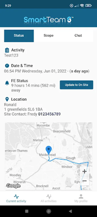 - Map tracking - enables all observers of the activity to see exactly when the field engineer is due on-site, allowing everyone involved to plan the activity start with confidence