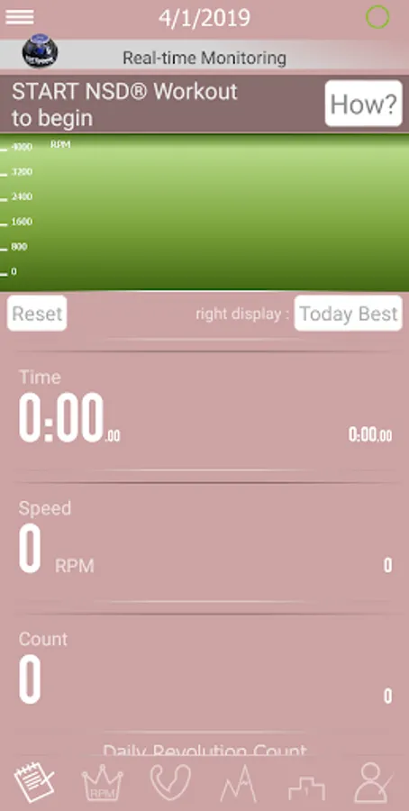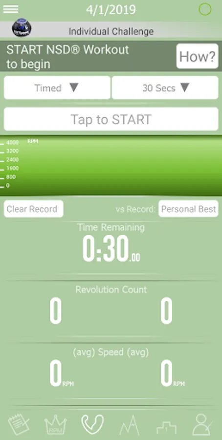 The PowerBall Spinner PB-700BT is an exciting gyroscopic exerciser equipped with a precise battery-free Bluetooth speedometer. Before using: Make sure that Bluetooth is enabled on your device. Launch the NSD Workout app and start your PB-700BT. The rotational movement of the rotor helps to deliver the necessary current for the Bluetooth sensor and it will automatically turn on when rotational speed reaches approximately 3,500 RPM. The onboard LED light will blink intermittently between blue and green to indicate that the counter is ready to pair with the NSD Workout app, and once connected it will return to a static green or blue light when successfully paired. At this point you can use any of the 6 different features within the app.