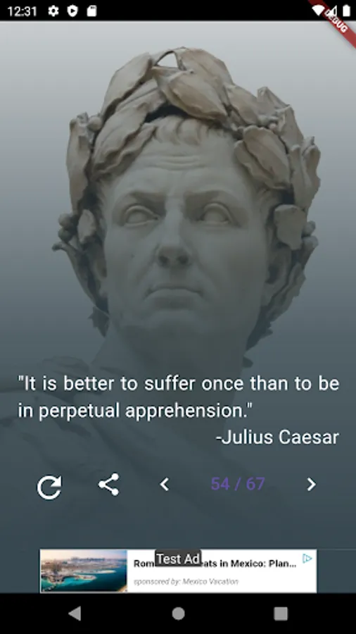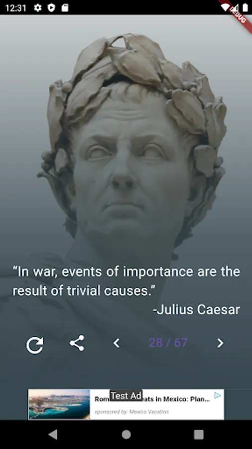 The "Julius Caesar Quotes" Android app is your gateway to the timeless wisdom and profound insights of one of history's most iconic figures. Immerse yourself in the words of Julius Caesar, a Roman general, statesman, and philosopher, whose legacy continues to shape the course of history. Explore a curated collection of his most memorable quotes, offering a glimpse into the mind of a visionary leader and strategist. Whether you seek inspiration, guidance, or simply a deeper understanding of human nature, this app brings you the essence of Caesar's wisdom, making it readily accessible at your fingertips.