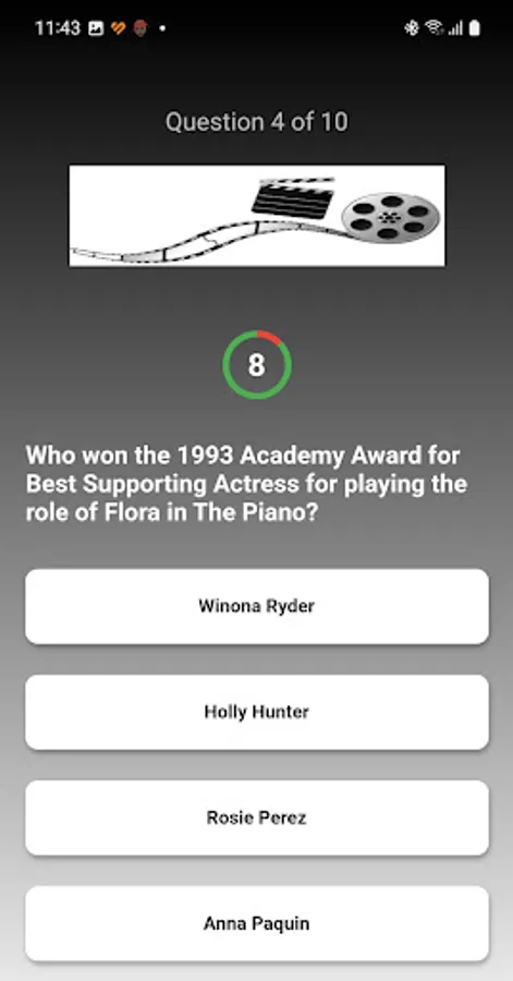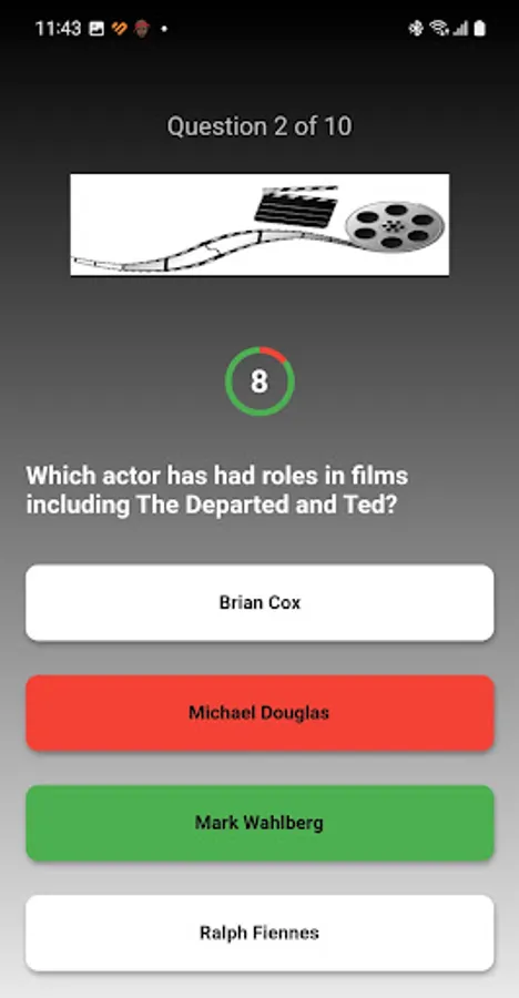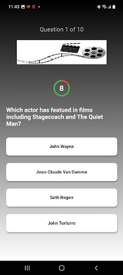 There are more than 1500 questions in our app, it will ask you random movie questions. We have action, fantastic, sc-fi, drama, historical, cult, comedy, western and romance movies questions