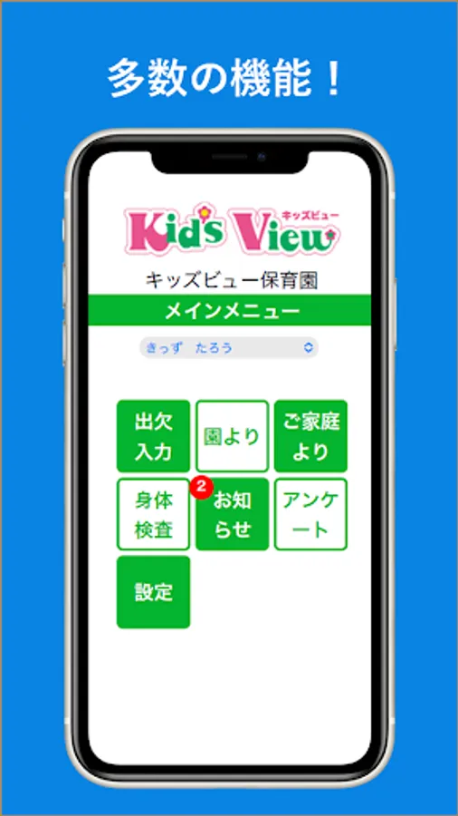 The "Kids View" app is a communication app that connects teachers and parents at facilities (nursery centers, kindergartens, etc.) where children attend. You can share absentee notifications, notifications from the facility, your child's growth, etc. through the app.