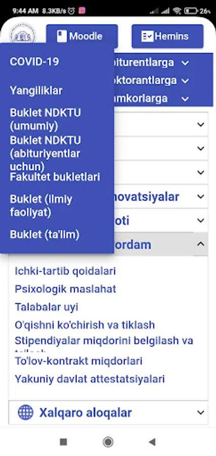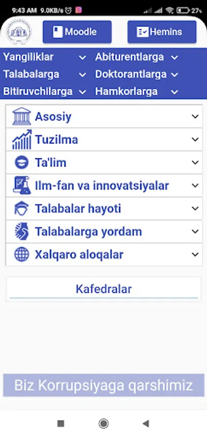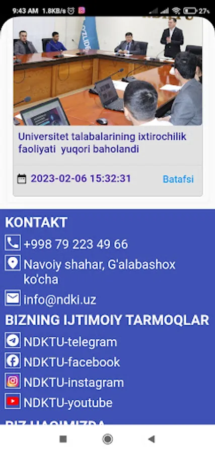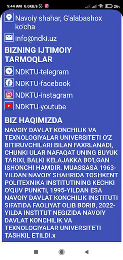 Navoiy davlat konchilik va texnologiyalar universetetini mobile ilovasi