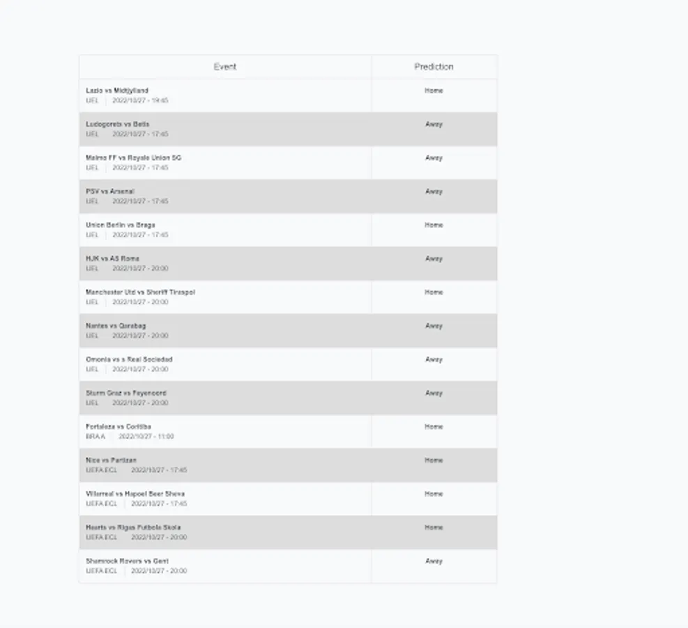 We take into account things like injuries, transfers and suspensions. The secondary set usually takes into account information such as the weather or life events that can affect the motivation of players. Most often, the system is automated, it works completely free of human participation or emotions. As a result, it can quickly predict matches with accuracy.