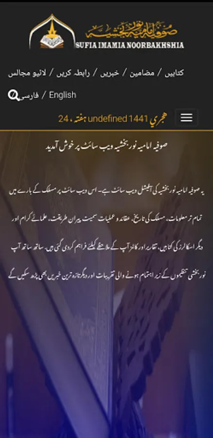 Sufia Imamia Noorbakhshia is a school of Islamic jurisprudence that emphasizes the Muslim Unity. Its very foundations rests on the belief in Allah, Angels, Prophets, Day of Judgement, Holy Quran and other Holy Islamic Scriptures revealed upon previous Prophets. While, practices include Prayers (five times in a day) Fasting of Ramadan, Zakah and Pilgrimage journey to Kaaba. These Beliefs and Practices has been excerpted from the books: Usool Aitaqadia(deals with Beliefs) and Fiqh ul Ahwat (deals with Islamic Jurisprudence), which were written by Hazrat Shah Syed Muhammad Nurbaksh. Noorbakhshia has its own Silsila (Sufi Order) : Silsila-e-Zahab (Golden Chain). This Silsila has Imam Haqiqi (Divinely Appointed Imam): from Imam Ali (A.S) to Imam Mahdi (A.S), and Imam Izafi (Deputy to Haqiqi Imam). The linkage of Imam Izafi stems from renowned Sufi saint Maroof e Karkhi and it will continue till they day of Judgement. Noorbakhshia is the only Sufi order of Islam whose foundations have been laid upon the teachings of Aima Tahirreen (Fourteen Infallibles).