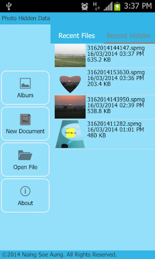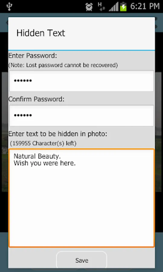 *Hide data inside photo with password protection.