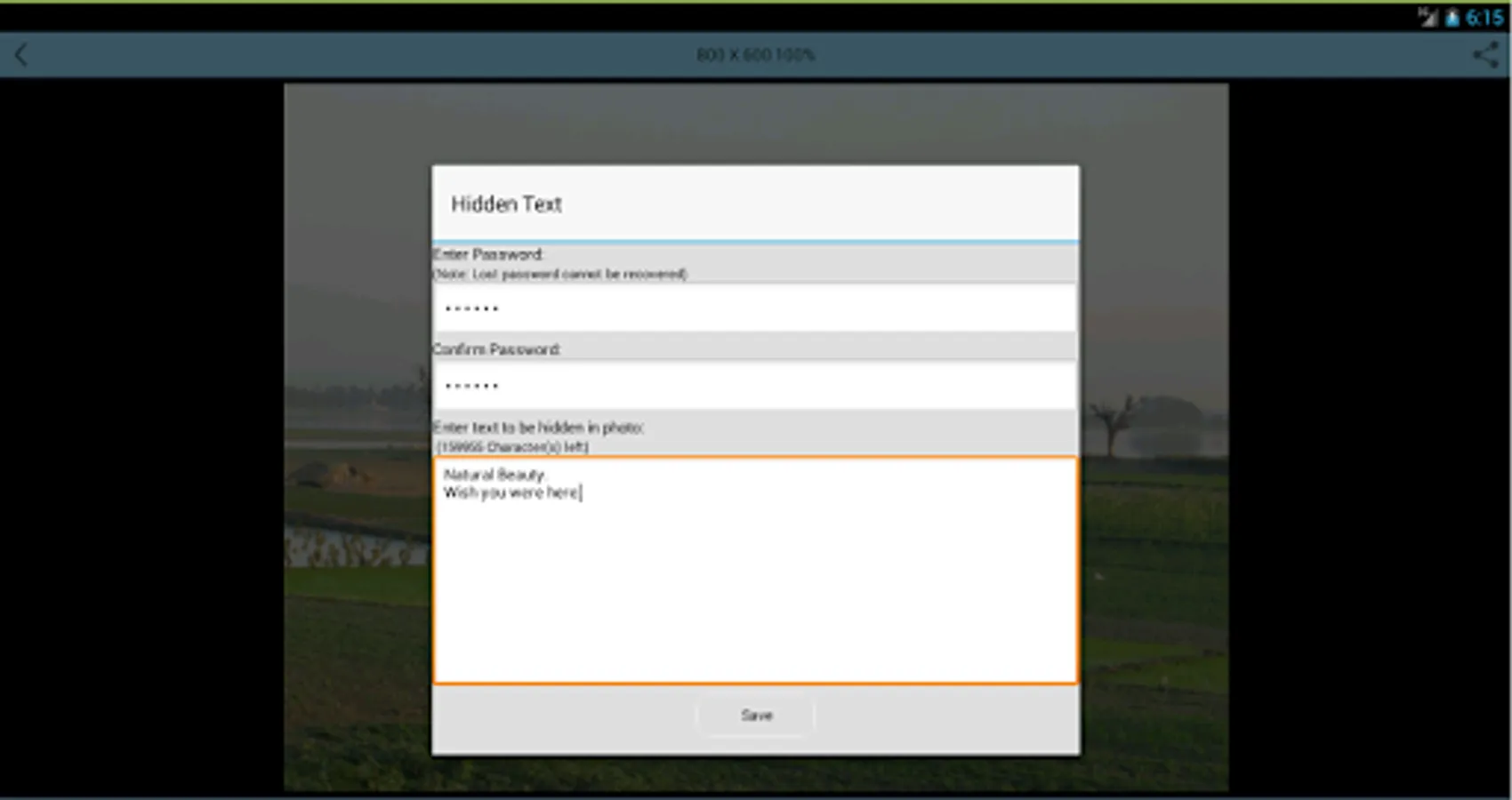 This is steganography application for Android. You can hide sensitive data securely inside the photo.