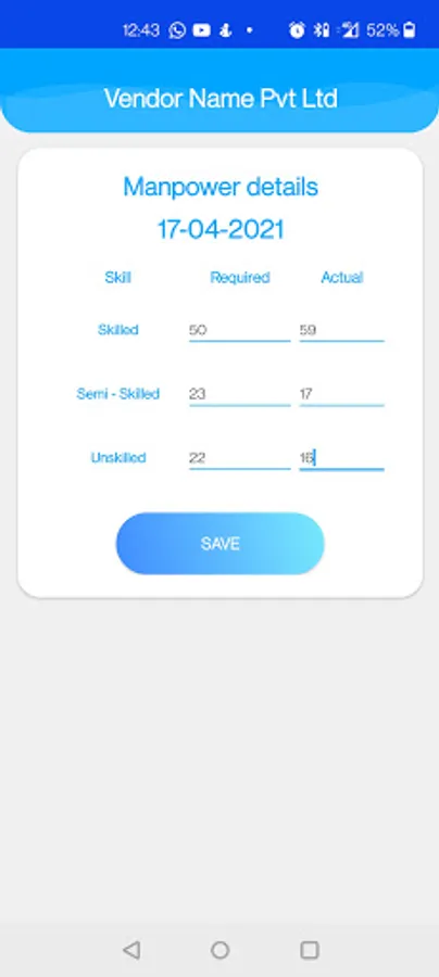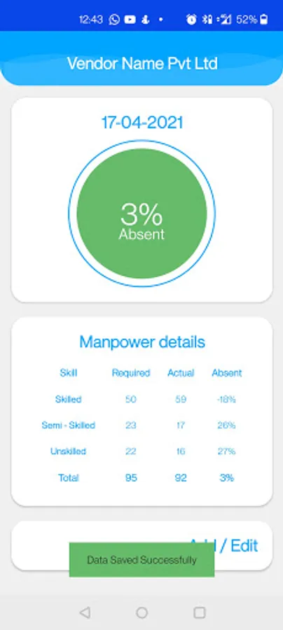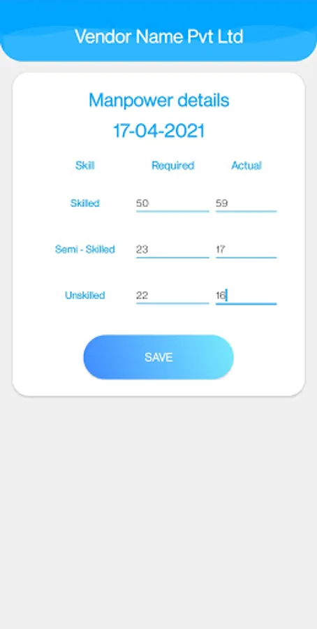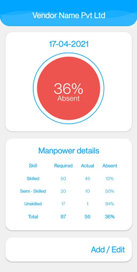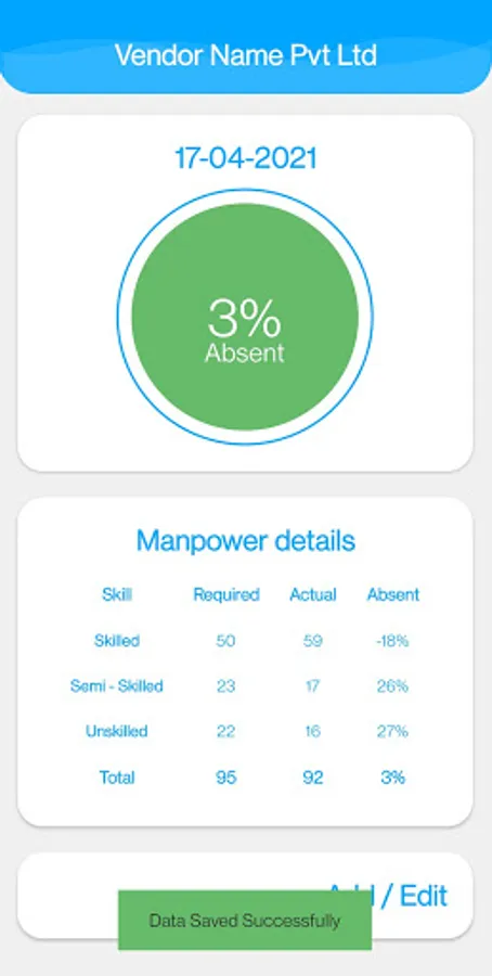 - Vendors can fill the present / absent status of their manpower for selected dates.
