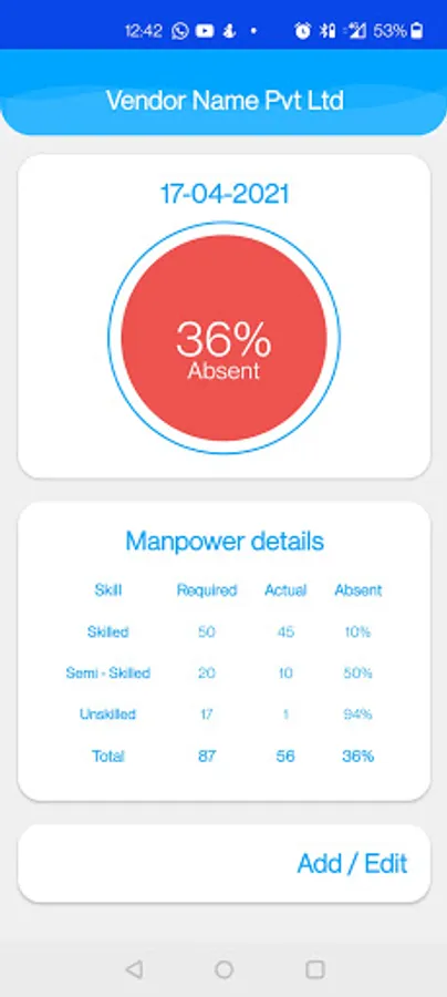 - The vendors can also view their own manpower status history on their app.