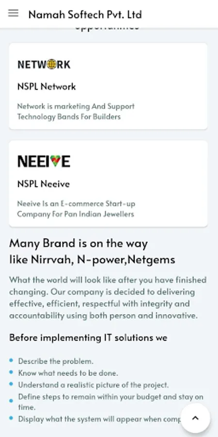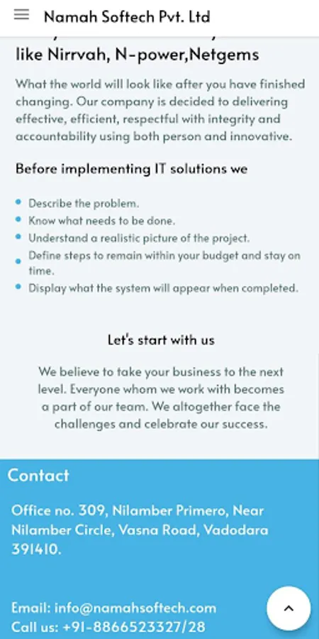 Namah Softech Pvt. Ltd. is an established software development company that has gained tremendous expertise over a period of time. Our strength has been in web development, offering mobile development, digital marketing, IOT development, Blockchain solutions, and staffing to multiple brands and startups.