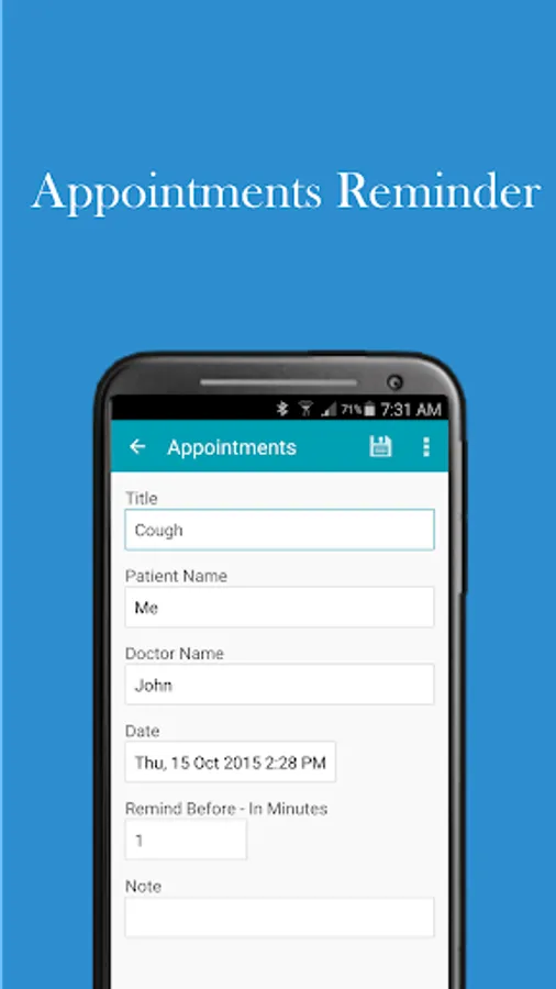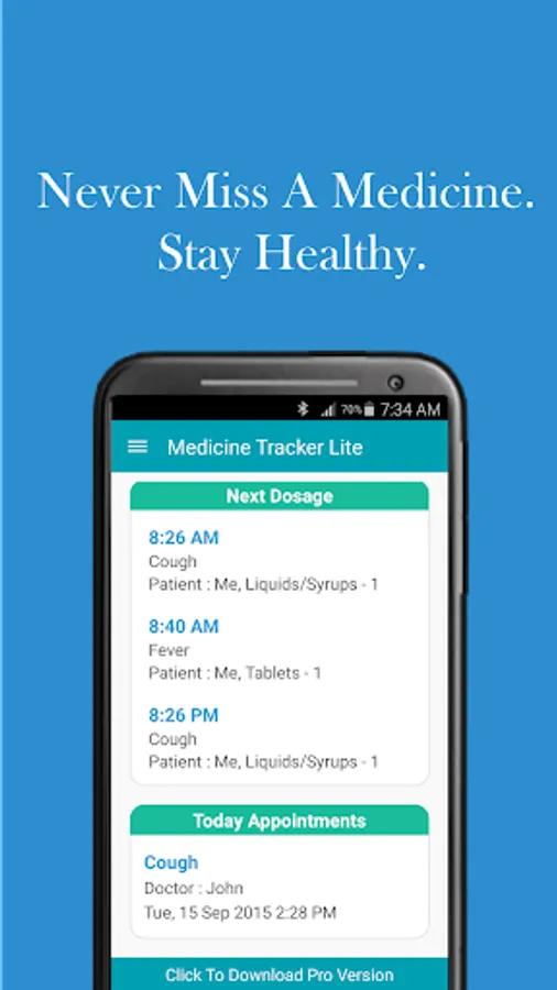Medicine Tracker helps you to keep track of prescriptions, reminds you when medications need to be taken and notify you when Doctors appointments are scheduled.