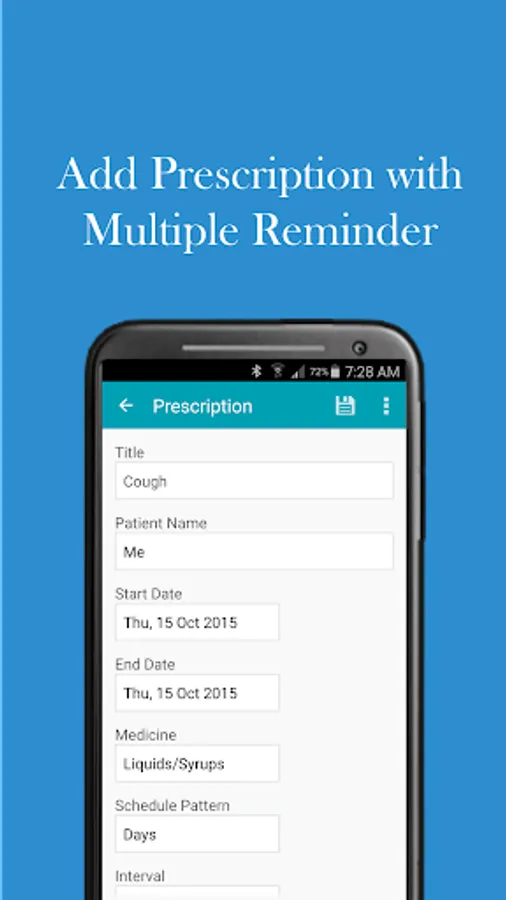 3. Prescriptions: Can set reminder at different times in a day.