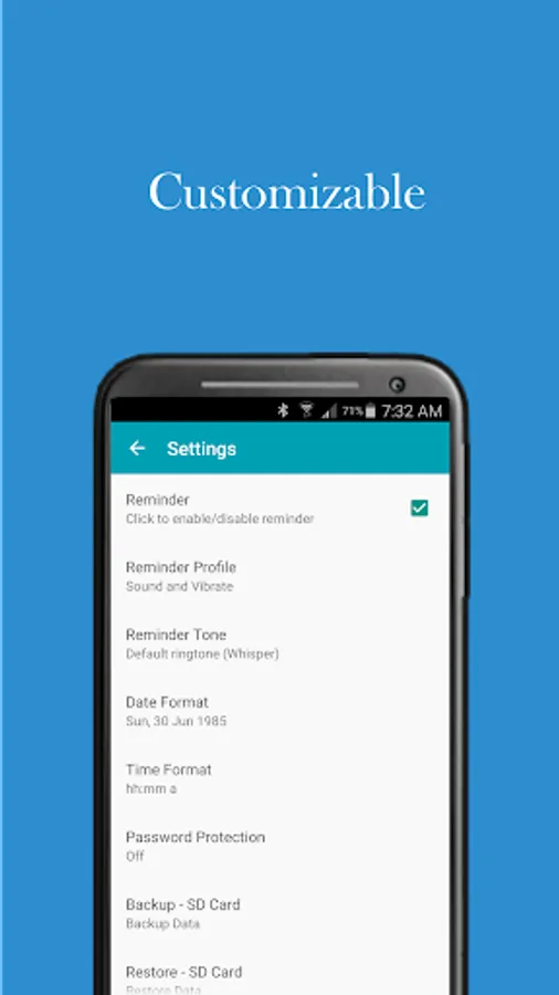 - Please do not move the application to the SD card if you want to use the widgets and reminder. (limitation of the Android operating system).