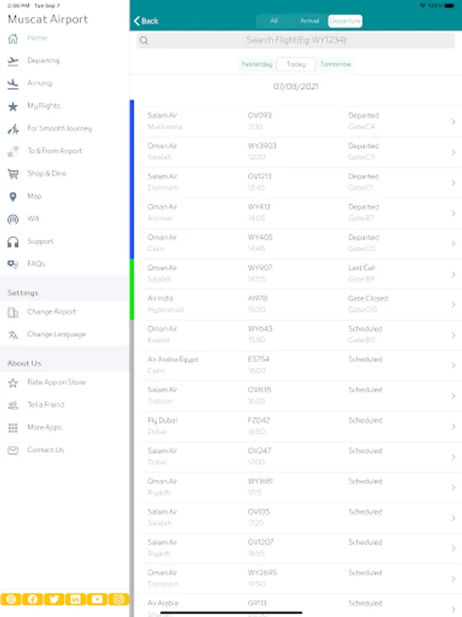 • Live flight Arrivals and Departures information for New Muscat (MCT) and Salalah (SLL) Airports